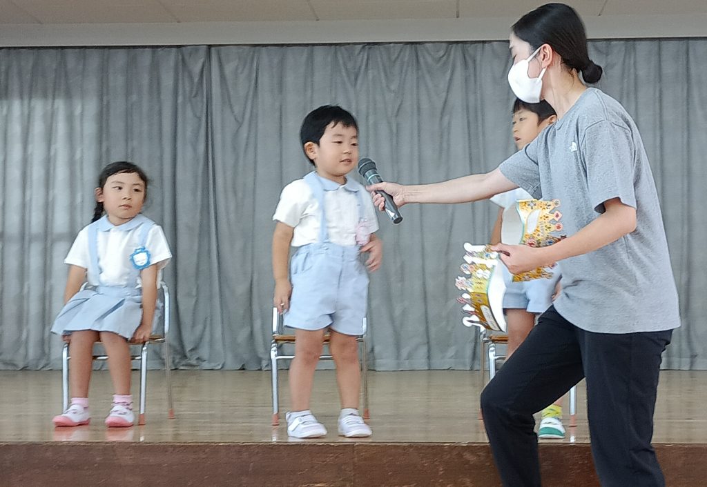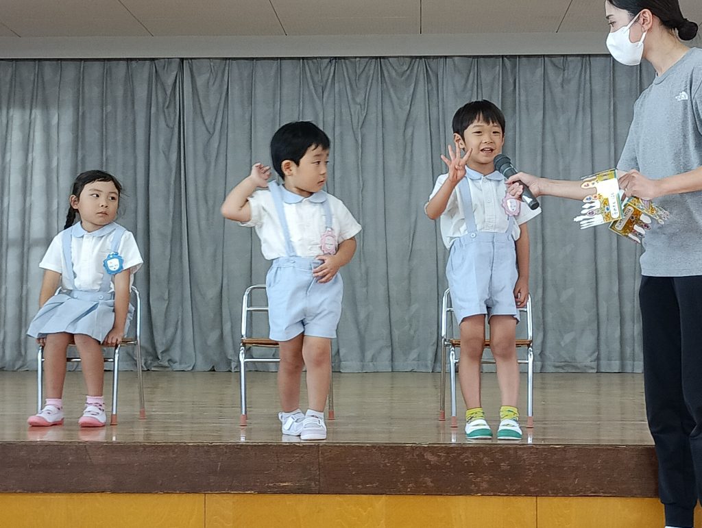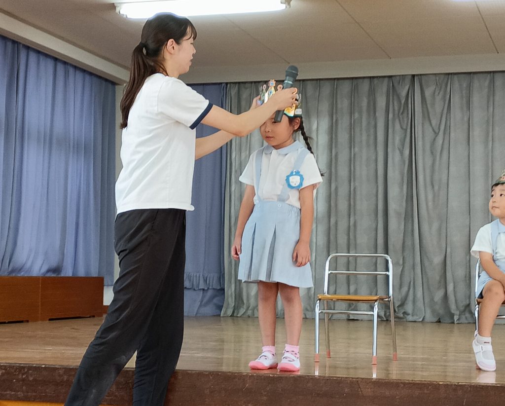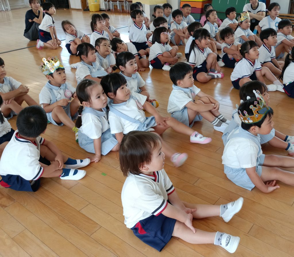 2025年09月30日 / 最終更新日時 : 2025年09月30日 さくら幼稚園 お知らせ 誕生日会👑 9月29日(月) 9月生まれのお友だちの誕生日を みんなでお祝いしました。🧨 お祝いの出し物は「何の形でしょう❓」でした。