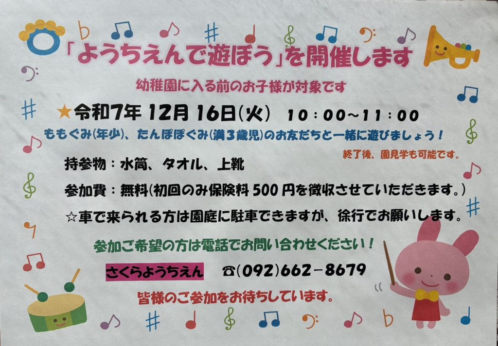 「ようちえんで遊ぼう」親子で遊びに来てくださいね🐣